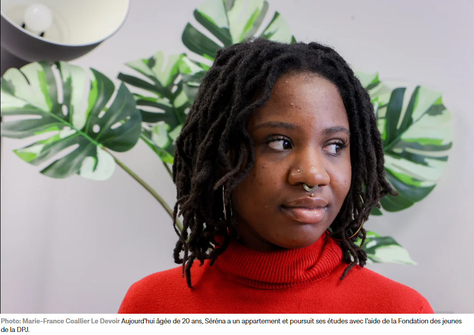 Dans un portrait publié par Le Devoir, elle revient sur les moments charnières de son adolescence. Arrivée d’Haïti à 7 ans, elle vit une période particulièrement éprouvante et, à 13 ans, une intervenante de son école à qui elle se confie contacte la DPJ. Comme son père refuse de collaborer, Séréna est placée en foyer d’accueil loin de chez elle, l’obligeant à changer d’école. Si l’adaptation n’est pas facile, elle souligne l’importance d’avoir été entourée par des intervenantes qui l’ont accompagnée avec bienveillance et qui l’ont aidée à avancer à son rythme.